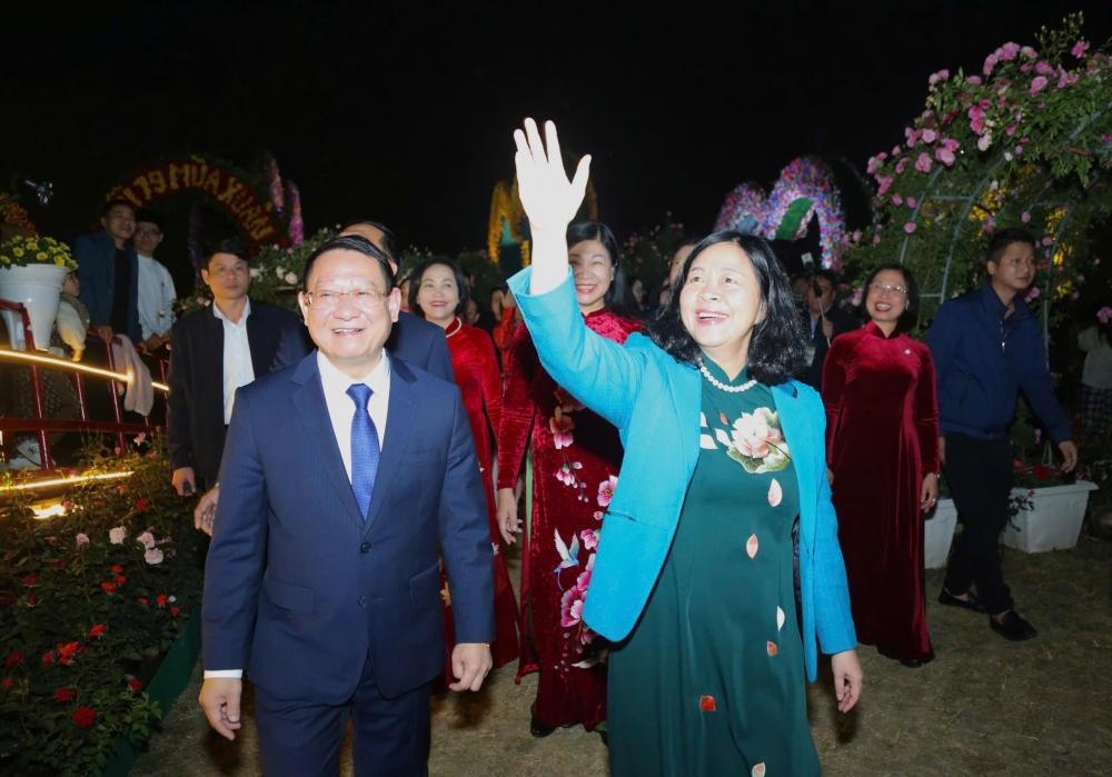 | Ủy viên Bộ Chính trị, Bí thư Thành ủy Hà Nội Bùi Thị Minh Hoài dự chương trình “Lễ hội hoa Mê Linh” |