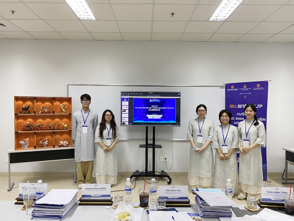 | 5 sinh viên: Lưu Thủy Nguyên, Phạm Thị Dung, Nguyễn Phạm Thu Trang, Trần Thị Thủy Trang và Vũ Huy Hoàng với dự án 3D hóa di sản tranh Đông Hồ |