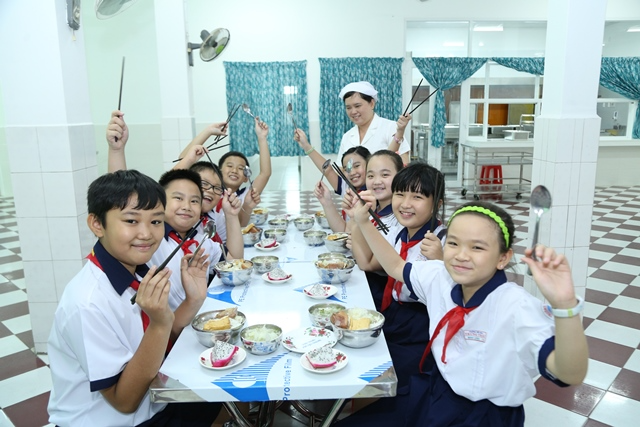 Bên cạnh đó, bữa ăn học đường cũng là cơ hội để nhà trường dạy cho học sinh nhiều kiến thức, kỹ năng như lịch sử địa phương, khoa học dinh dưỡng, giao tiếp, xếp hàng, chia sẻ…