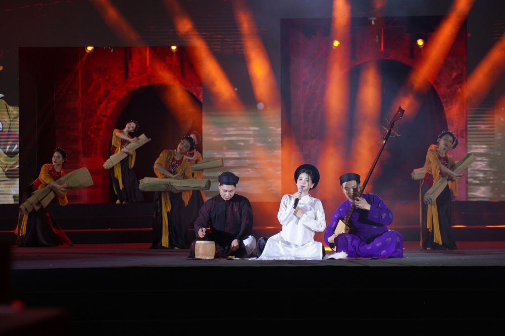 | Chương trình nghệ thuật "Âm vang Mê Linh" có sự kết hợp tinh tế giữa nghệ thuật truyền thống và âm nhạc hiện đại |