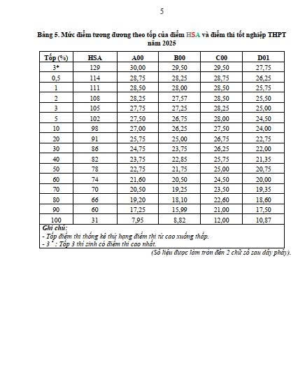Viện Đào tạo số và Khảo thí, Đại học Quốc Gia Hà Nội đã phân tích điểm thi đánh giá năng lực học sinh trung học phổ thông (HSA) và điểm thi tốt nghiệp THPT của các thí sinh tham dự kì thi HSA năm 2025 để các cơ sở giáo dục đại học tham khảo sử dụng trong tuyển sinh đại học hoặc xây dựng bảng quy đổi tương đương phù hợp với yêu cầu tuyển sinh của từng trường.