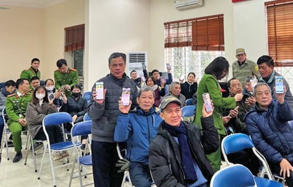 | Công an phường Nhật Tân (quận Tây Hồ) tuyên truyền, giúp người dân nhận diện được tội phạm lừa đảo sử dụng công nghệ cao trên không gian mạng. |