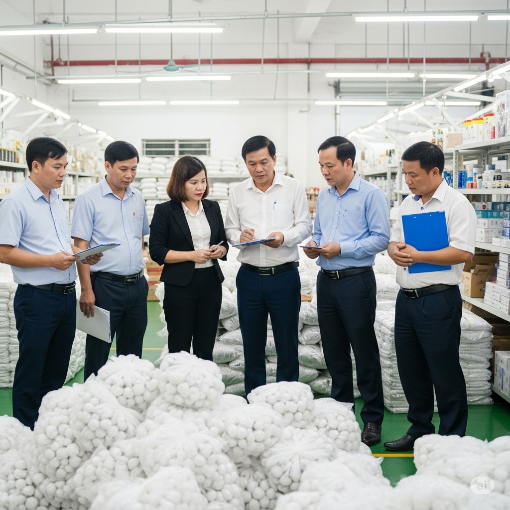 | Ảnh minh họa cán bộ kiểm tra hoạt động sản xuất, kinh doanh của doanh nghiệp được vẽ bằng ứng dụng AI. |