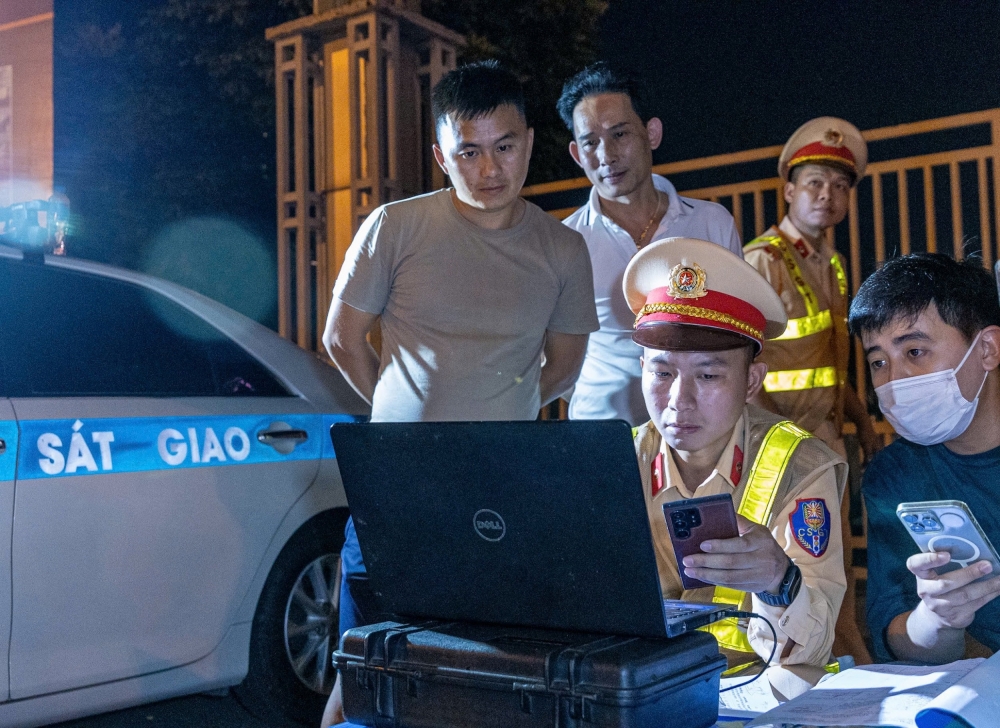| Cảnh sát giao thông trích xuất dữ liệu giám sát hành trình trên phương tiện để kiểm soát. |