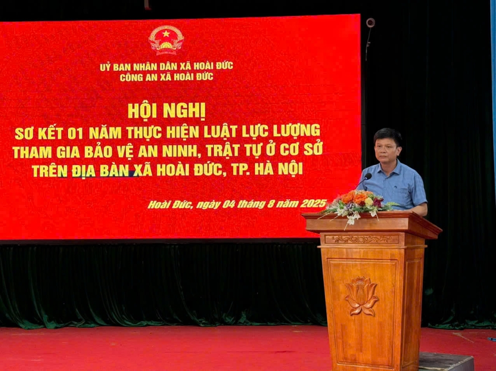 Phát biểu tại hội nghị, đồng chí Nguyễn Huy Hoàng, Phó Bí thư Đảng uỷ, Chủ tịch UBND xã Hoài Đức ghi nhận, biểu dương những đóng góp của lực lượng bảo vệ ANTT cơ sở, đồng thời yêu cầu tiếp tục củng cố, nâng cao chất lượng hoạt động, thường xuyên tập huấn, rèn luyện kỹ năng xử lý tình huống, đẩy mạnh tuyên truyền xây dựng phong trào “Toàn dân bảo vệ an ninh Tổ quốc”, phát huy hiệu quả các tổ tự quản, nhân rộng mô hình điển hình tiên tiến.