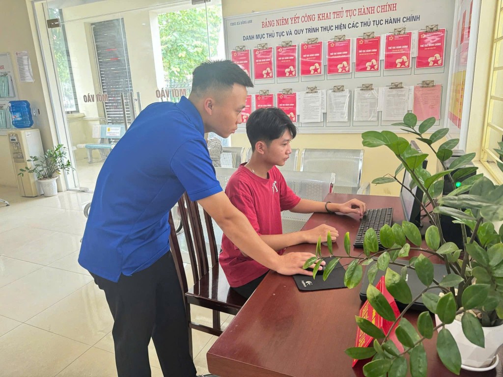 Đều đặn mỗi sáng, tại các điểm phục vụ hành chính công xã Đông Anh (TP Hà Nội), hình ảnh các bạn đoàn viên với chiếc áo xanh thanh niên, tay cầm điện thoại thông minh, hướng dẫn từng thao tác cho người dân trên màn hình máy tính đăng nhập cổng dịch vụ công quốc gia… đã trở nên quen thuộc với người dân nơi đây. Đó chính là các bạn trẻ được phân công thường xuyên hỗ trợ Nhân dân giải quyết thủ tục hành chính trực tuyến.
