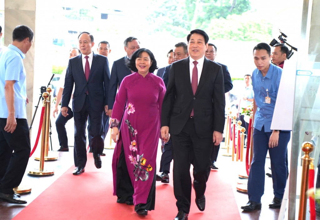 | Ủy viên Bộ Chính trị, Chủ tịch nước Lương Cường dự buổi lễ |