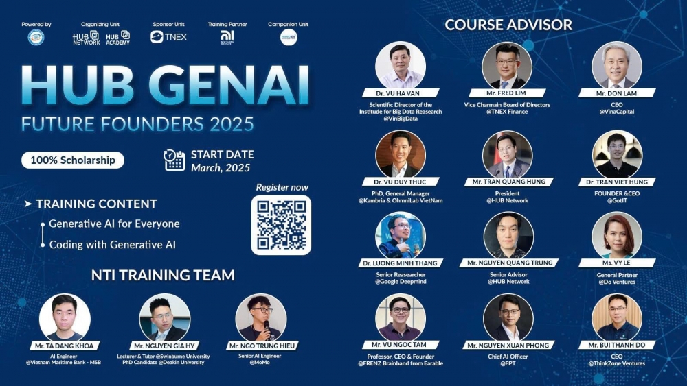 Được biết, AI tạo sinh (Generative AI) đang tạo ra bước nhảy vọt trong nhiều lĩnh vực. Vì vậy, Hub Academy tổ chức chương trình Hub GenAI Future Founders 2025 nhằm mục tiêu hỗ trợ các tài năng trẻ làm chủ AI tạo sinh để ứng dụng vào thực tiễn.