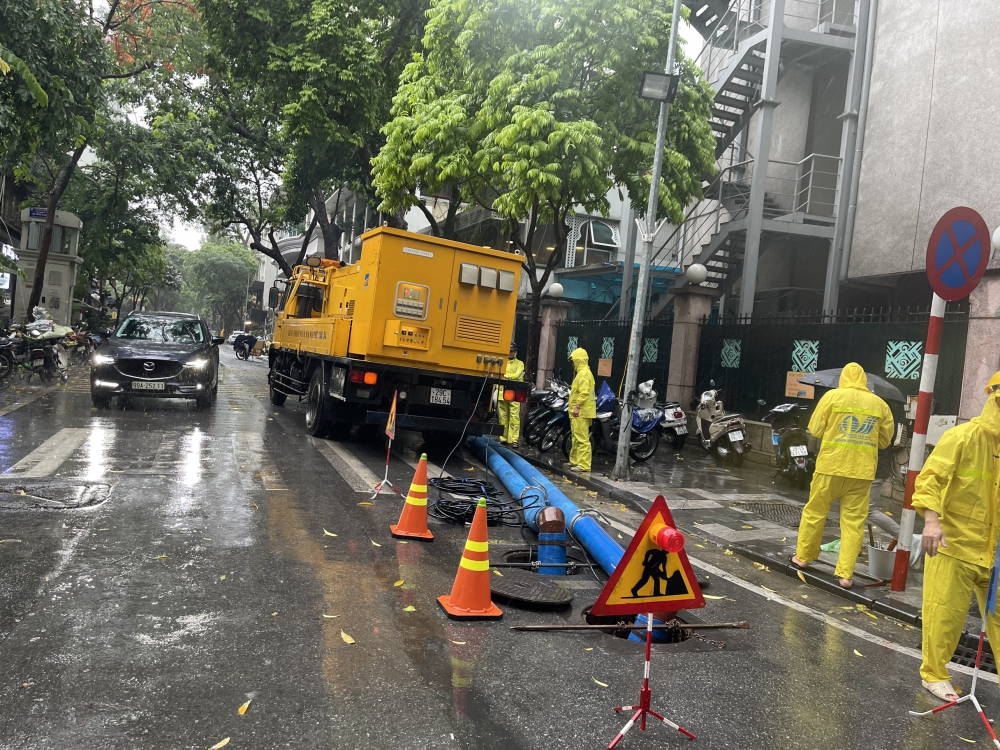 Ngay từ khi xuất hiện mưa, Công ty TNHH MTV Thoát nước Hà Nội đã triển khai công tác ứng trực, giải quyết thoát nước, tua vớt rác tại miệng thu trên toàn địa bàn quản lý, mở cửa phai của các hồ điều hòa như hồ Thiền Quang, Bảy Mẫu, Đống Đa…; vận hành hợp lý các trạm bơm đầu mối Yên Sở, Đồng Bông 1, Đồng Bông 2, Cổ Nhuế… để hạ mức nước trên hệ thống theo đúng quy định.