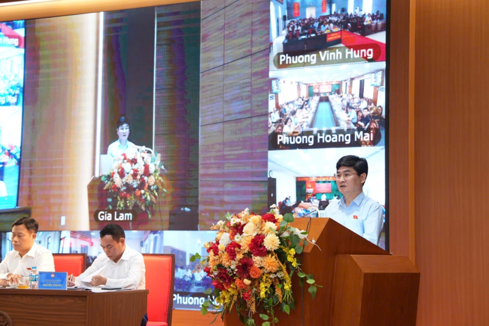 Thay mặt Đoàn đại biểu Quốc hội thành phố Hà Nội - Đơn vị bầu cử số 4, đại biểu Nguyễn Tuấn Thịnh tiếp thu các ý kiến, kiến nghị của đại diện cử tri các xã, phường nêu, đồng thời giải thích, trả lời một số vấn đề cử tri nêu thuộc thẩm quyền.