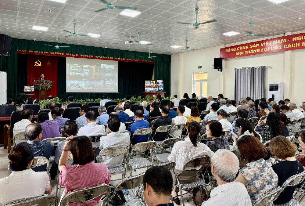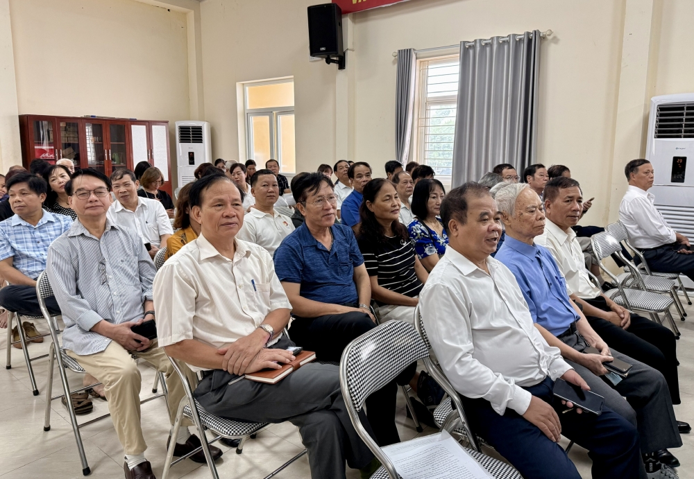 | Đông đảo cử tri phường Tương Mai tham dự buổi tiếp xúc cử tri tại điểm cầu trực tuyến |