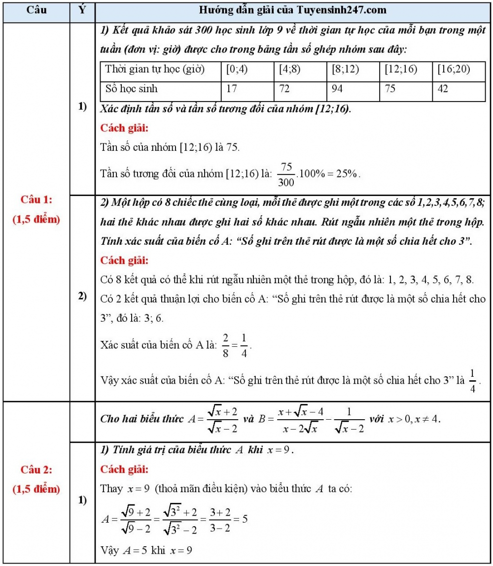 Đáp án môn thi Toán (Nguồn: Tuyensinh247.com):
