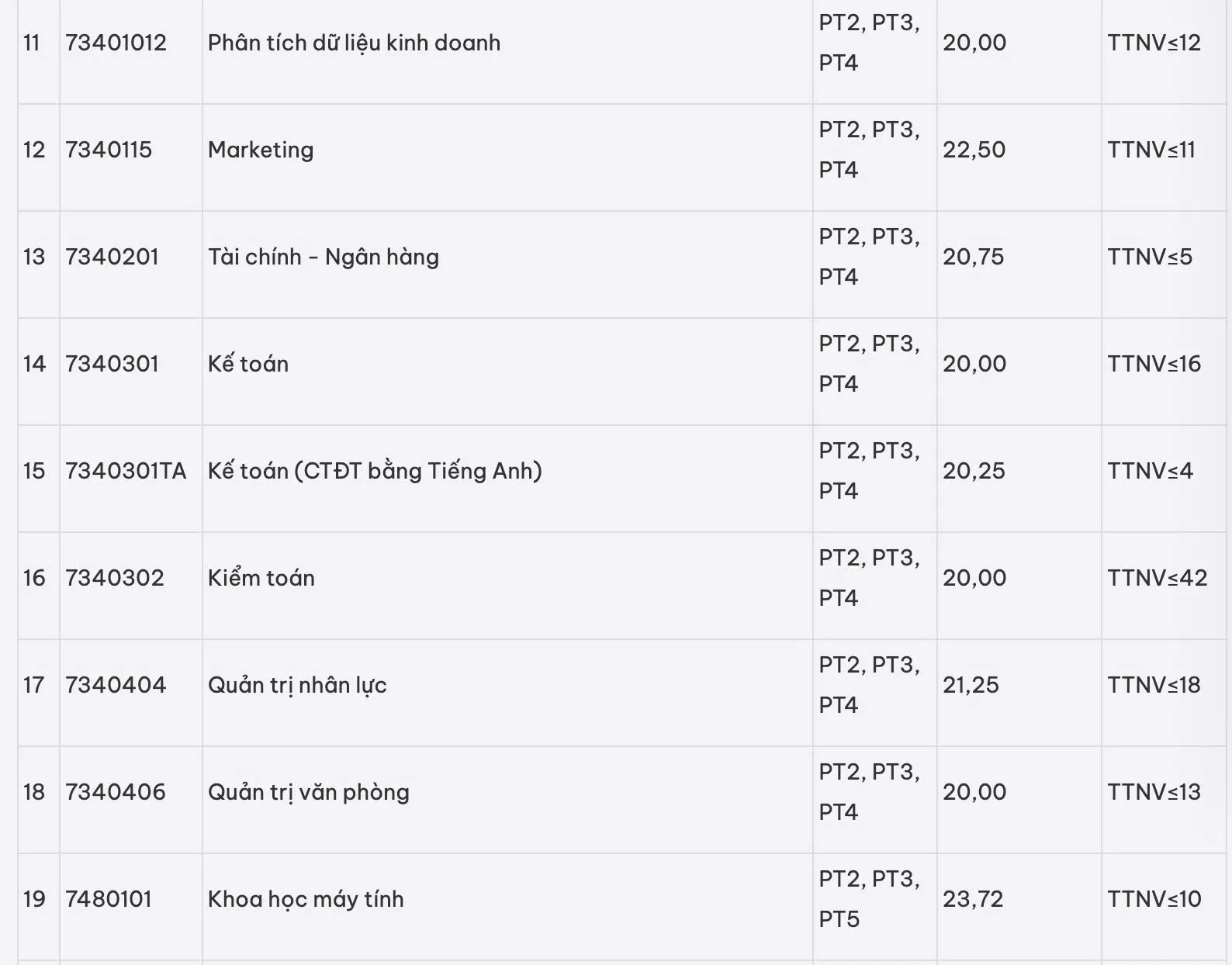 Điểm chuẩn các ngành còn lại từ 20 điểm đến 23,56 điểm.