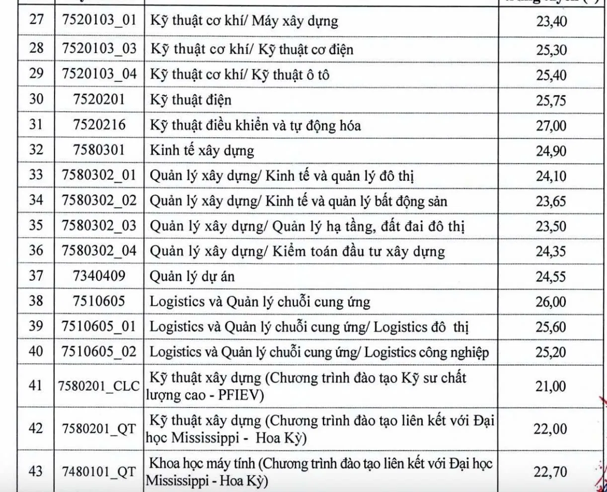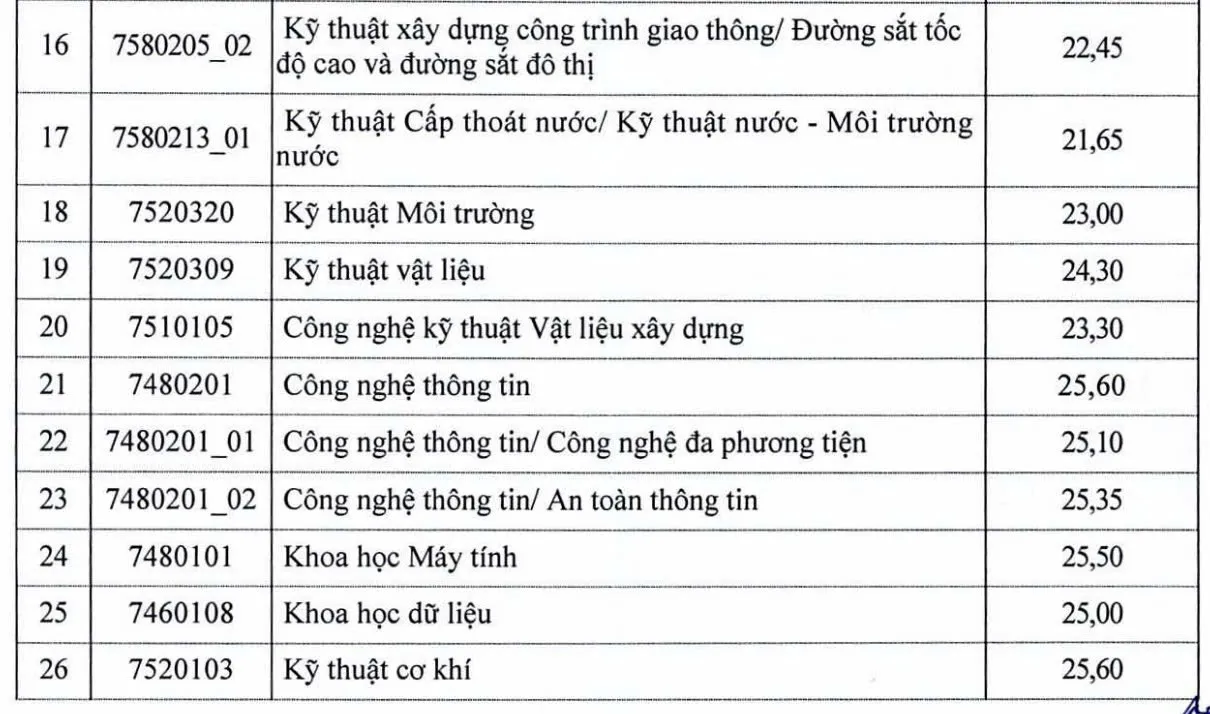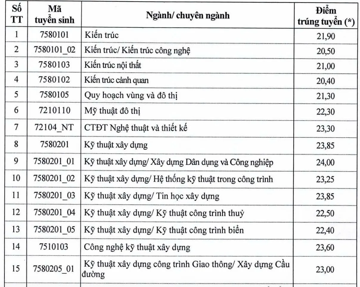 Trường Đại học Xây dựng Hà Nội thông tin: điểm chuẩn của trường năm nay tăng vọt, như Kỹ thuật môi trường (23 điểm), Kỹ thuật cấp thoát nước (21,65), Kỹ thuật công trình thủy (22,5), Kỹ thuật công trình biển (22,4).
