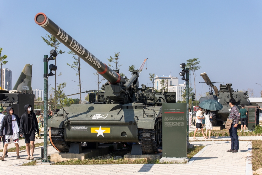 | Du khách chiêm ngưỡng xe tăng trong Bảo tàng Quân sự Việt Nam (Ảnh: Xuân Hoàng) |