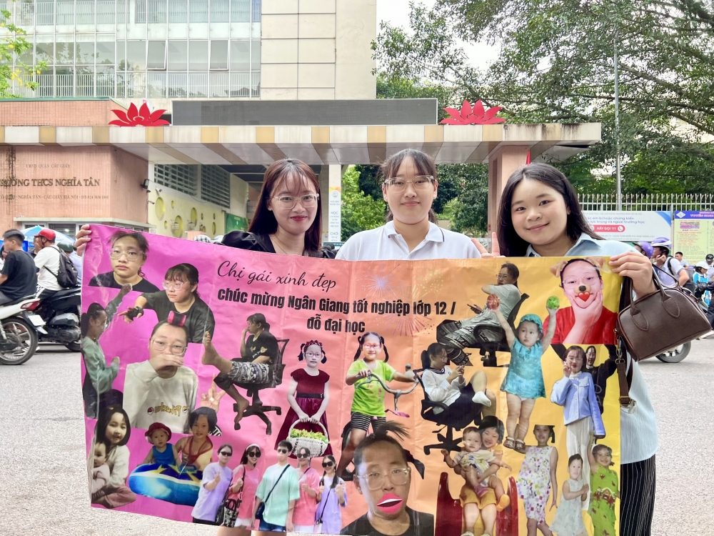 Chị gái của thí sinh Ngân Giang (THPT Lương Thế Vinh) cho biết: Cả nhà đã có mặt tại điểm thi từ rất sớm, trước khi kết thúc môn thi cuối cùng gần nửa tiếng. “Ngồi ở nhà mà lòng cứ nôn nao không yên, chỉ mong đến giờ đón em”, chị nói “Mình muốn khi bước ra khỏi cổng trường, điều đầu tiên em nhìn thấy sẽ là gia đình - những người luôn đồng hành và ủng hộ em trên mọi chặng đường. Dù kết quả thế nào, gia đình luôn là điểm tựa vững chắc nhất. Nhìn thấy nụ cười rạng rỡ của em khi bước ra khỏi phòng thi, tất cả mệt mỏi dường như tan biến. Điều quan trọng nhất là em đã cố gắng hết sức, đó đã là thành công lớn nhất rồi” - chị nói.