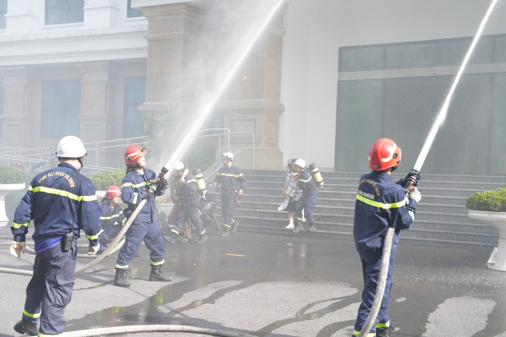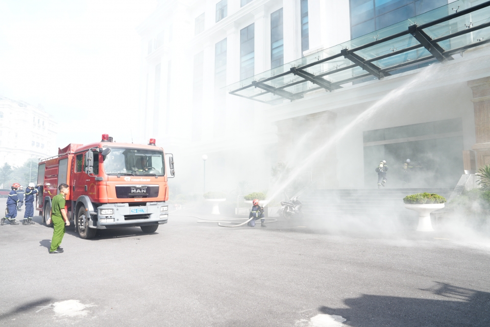 | Phối hợp giữa các lực lượng dập tắt đám cháy trong tình huống giả định |