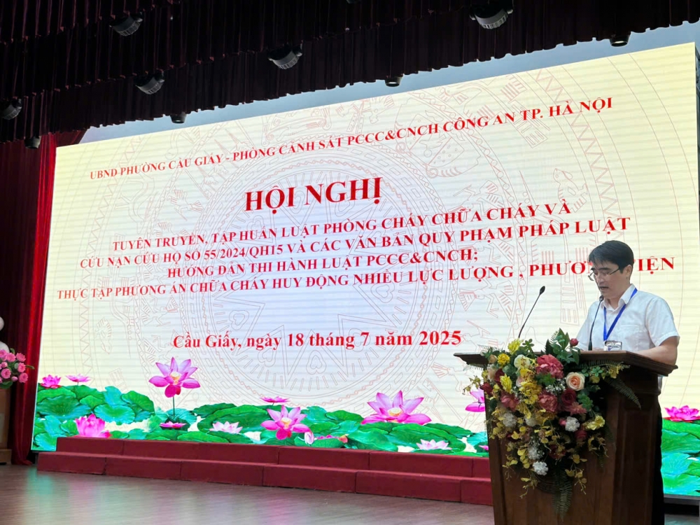 Phát biểu tại hội nghị, Phó Chủ tịch UBND phường Cầu Giấy Lương Mậu Hùng cho biết, tình hình cháy nổ tại Hà Nội nói chung và phường Cầu Giấy nói riêng vẫn đang diễn biến phức tạp, với nhiều vụ cháy xảy ra tại nhà ở hộ gia đình hoặc nhà ở kết hợp sản xuất, kinh doanh. Việc phòng ngừa, ngăn chặn và giảm thiểu thiệt hại do cháy nổ là nhiệm vụ trọng tâm nhằm đảm bảo an ninh trật tự trên địa bàn.
