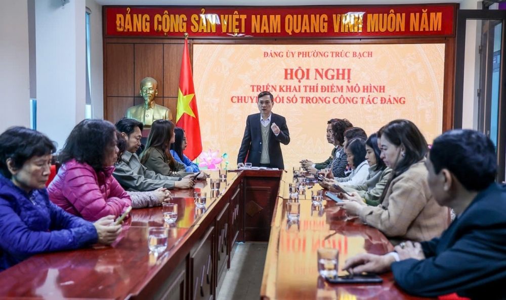 Đảng bộ phường Trúc Bạch (quận Ba Đình) triển khai thí điểm mô hình mới về chuyển đổi số trong công tác Đảng. Ảnh: HNM |