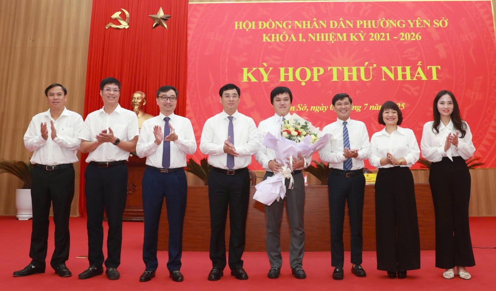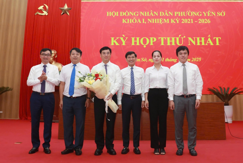 | Lãnh đạo UBND phường Yên Sở nhận hoa chúc mừng tại kỳ họp |
