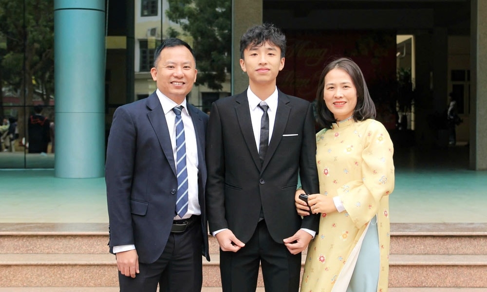 Thời điểm này, Huy đang tập trung ôn luyện cho kỳ thi tốt nghiệp trung học phổ thông năm 2025. Em dự định sẽ lựa chọn theo học một trong số những trường đã trúng tuyển tại Mỹ sau khi hoàn thành kỳ thi tốt nghiệp trung học phổ thông. Huy sinh ra trong gia đình có 3 anh em (Huy là anh cả). Gia đình em hiện sinh sống tại phường Ngô Quyền (thành phố Bắc Giang). Bố và mẹ em làm việc tại Công ty cổ phần xe khách Bắc Giang.