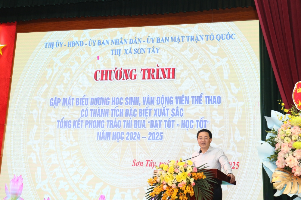 Phát biểu tại buổi lễ, Bí thư Thị ủy Sơn Tây Trần Anh Tuấn nêu bật ý nghĩa của việc phát triển song song giữa học tập văn hóa, rèn luyện thể thao và sáng tạo nghệ thuật trong xây dựng, bồi đắp thế hệ trẻ thị xã.