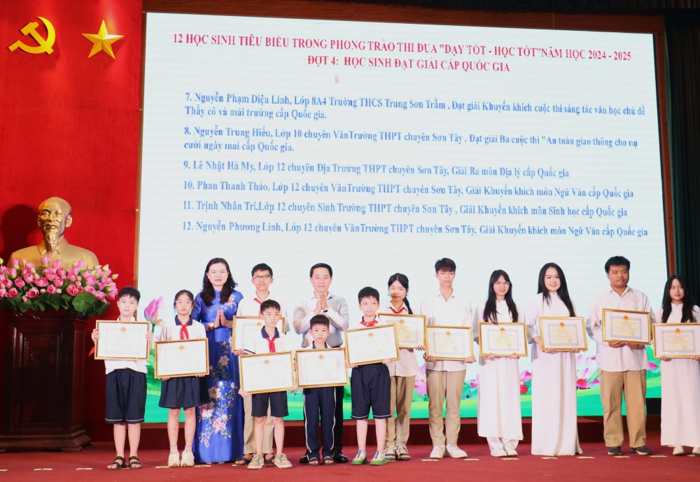 Đồng thời, nhân dịp này, Sơn Tây cũng tổng kết phong trào thi đua “Dạy tốt - Học tốt”, khen thưởng các tập thể, cá nhân có thành tích xuất sắc tiêu biểu ngành Giáo dục và Đào tạo thị xã năm học 2024-2025.