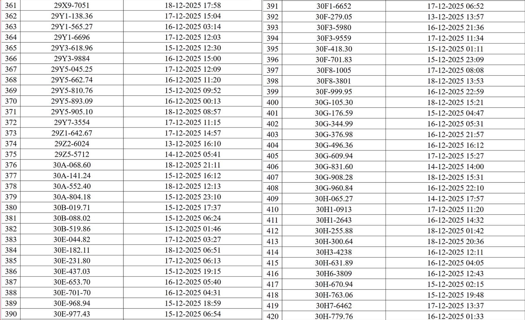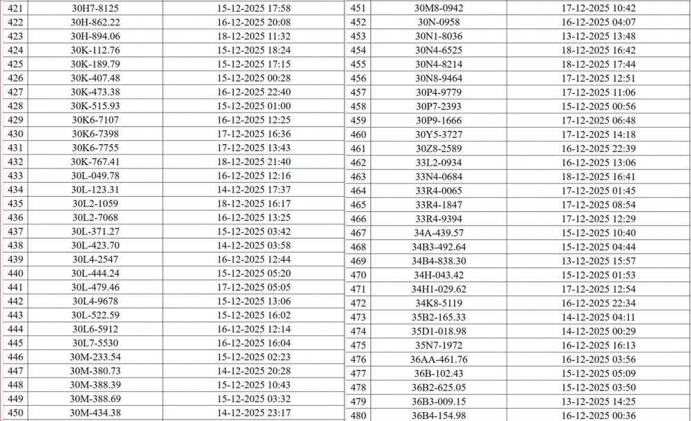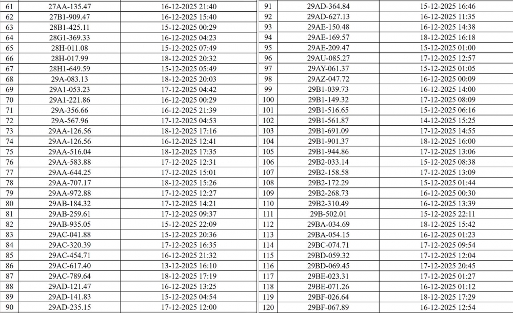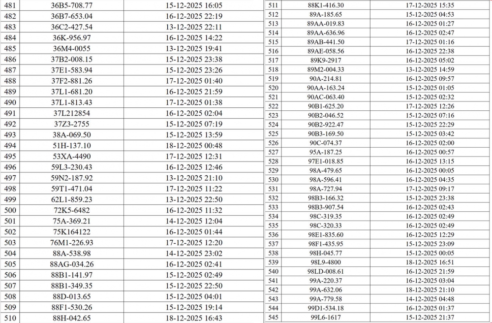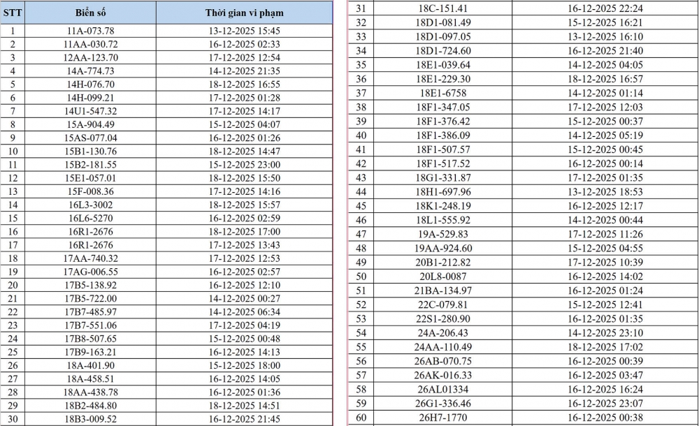 Danh sách các phương tiện vi phạm (đợt 1):