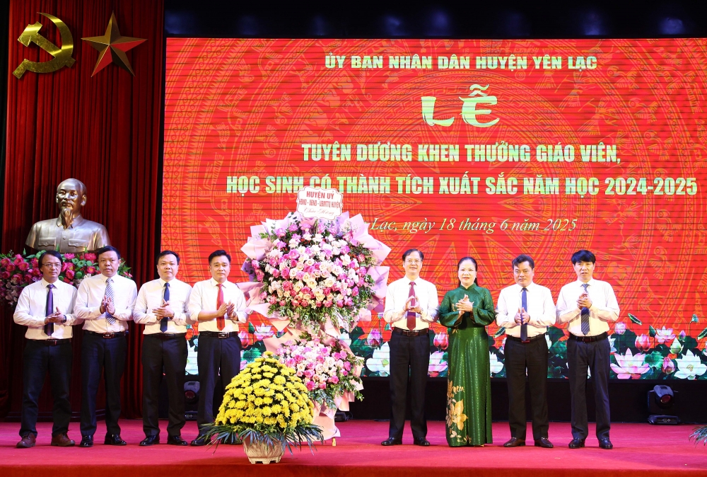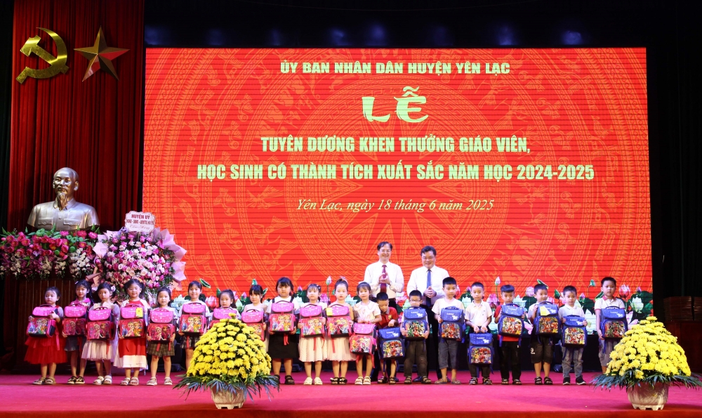 Tại lễ tuyên dương, UBND huyện, Hội Khuyến học huyện Yên Lạc đã khen thưởng 216 giáo viên và học sinh đạt thành tích cao trong học tập, giảng dạy năm học 2024-2025.