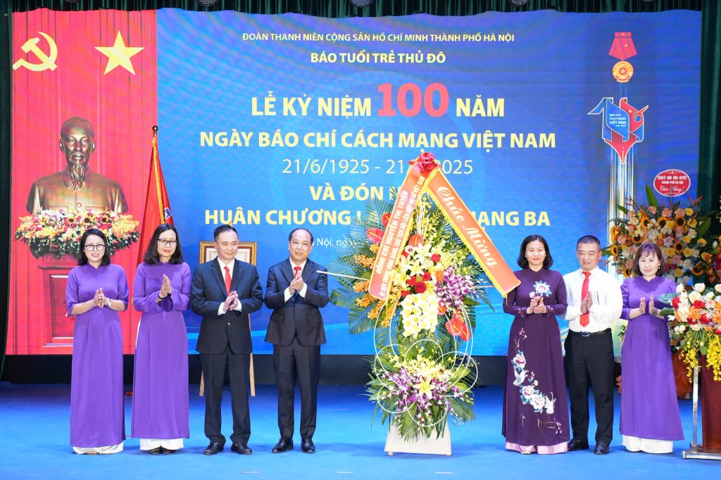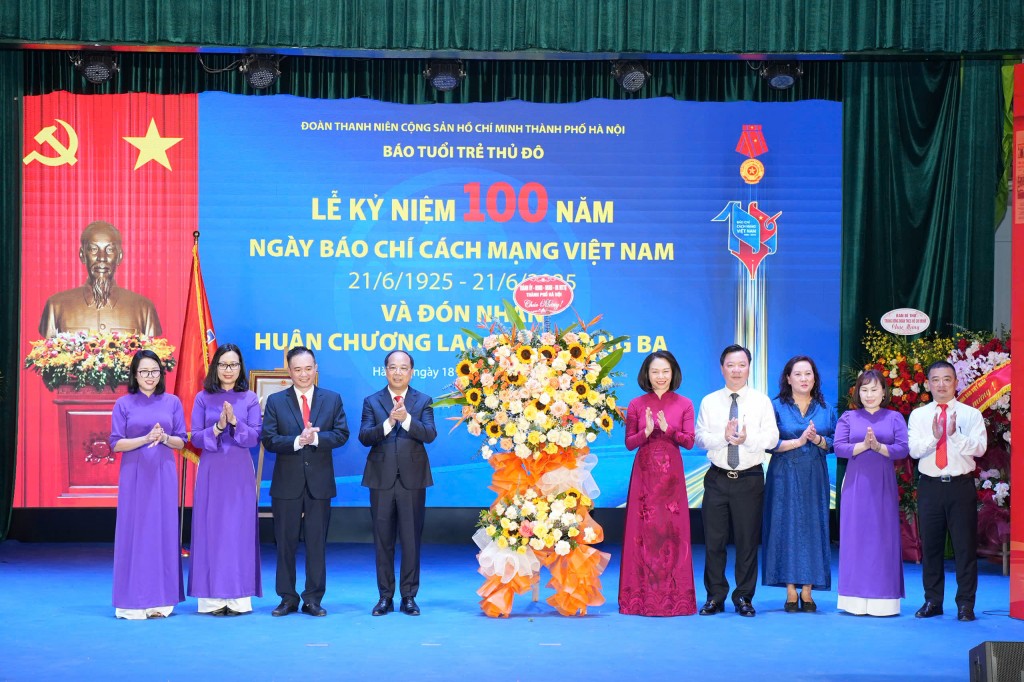 Phát biểu tại buổi lễ, đồng chí Nguyễn Tiến Hưng, UVBCH Trung ương Đoàn, Phó Bí thư Thành đoàn, Chủ tịch Hội Sinh viên TP Hà Nội thay mặt lãnh đạo Thành đoàn chúc mừng Báo Tuổi trẻ Thủ đô đã vinh dự đón nhận Huân chương Lao động hạng Ba do Chủ tịch nước trao tặng.