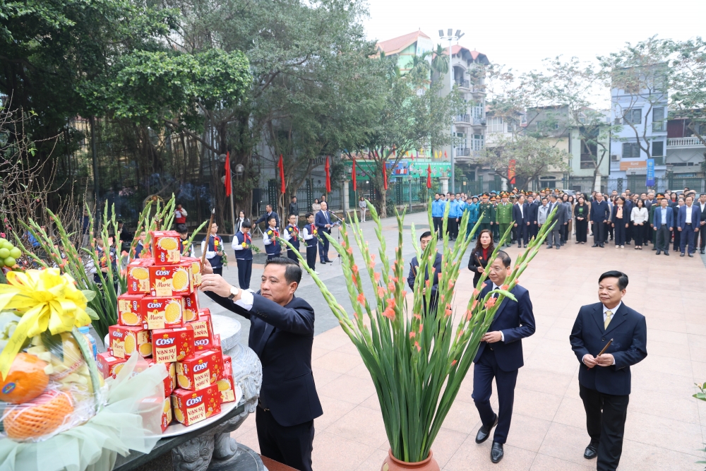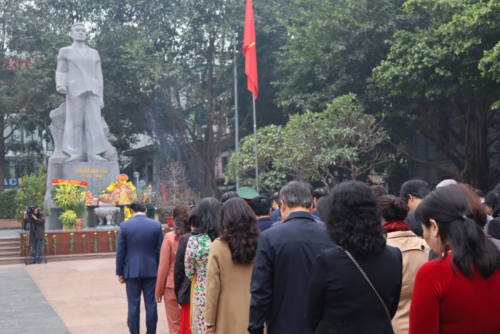 Tại Khu tưởng niệm đồng chí Hoàng Văn Thụ (phường Tương Mai, quận Hoàng Mai), Bí thư Quận ủy Nguyễn Xuân Linh dẫn đầu đoàn đại biểu thành kính dâng hương tưởng nhớ người chiến sĩ cách mạng kiên trung, tấm gương sáng ngời về tinh thần đấu tranh không khoan nhượng với kẻ thù.