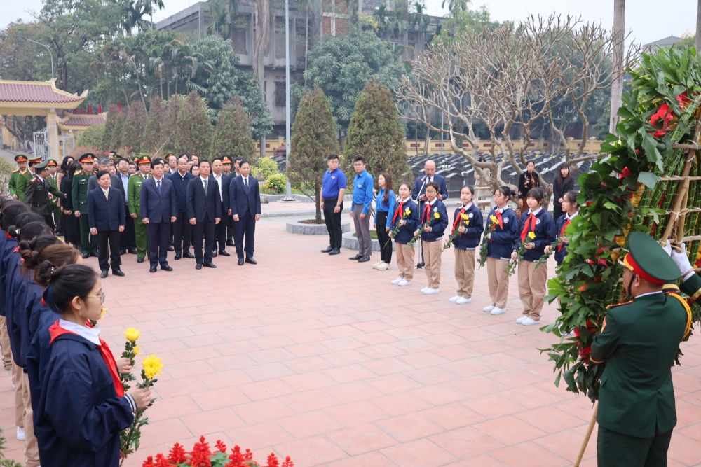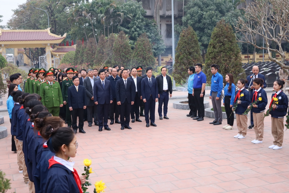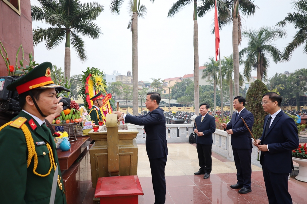 Trong không khí trang nghiêm, các đại biểu đã đặt vòng hoa, dâng hương tại Đài tưởng niệm Nghĩa trang liệt sĩ Ngọc Hồi - nơi an nghỉ của gần 1.300 liệt sĩ đã anh dũng hy sinh vì độc lập, tự do của Tổ quốc.