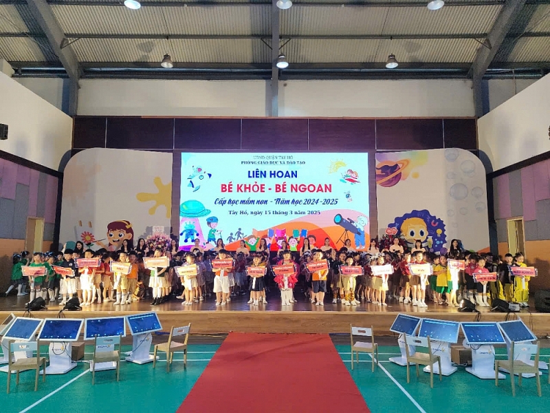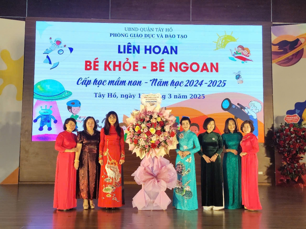 Phát biểu khai mạc, bà Trần Thị Hương, Trưởng phòng GD&ĐT quận Tây Hồ, nhấn mạnh: Chăm sóc và giáo dục trẻ là hai nhiệm vụ song hành quan trọng trong trường mầm non. Thực hiện chỉ đạo của Thành ủy Hà Nội về xây dựng người Hà Nội thanh lịch, văn minh, các trường mầm non trên địa bàn đã chủ động xây dựng chương trình giáo dục phát triển toàn diện, giúp trẻ tự lập, tự tin và hình thành thói quen ứng xử văn minh. Liên hoan Bé Khỏe - Bé Ngoan là dịp để các bé thể hiện năng khiếu, kỹ năng, đồng thời tạo tiền đề vững chắc khi bước vào bậc tiểu học.