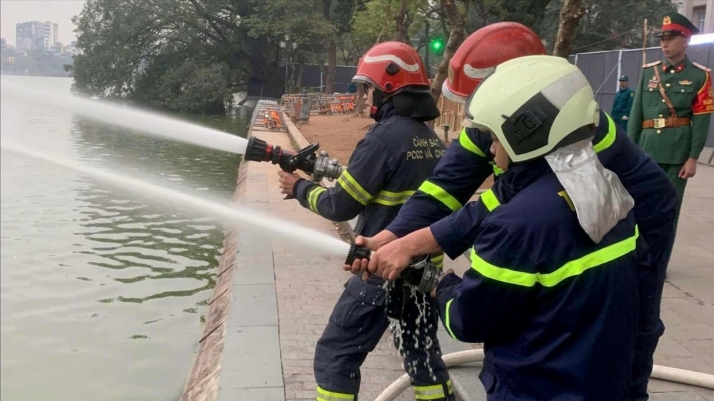 Qua kiểm tra, phát hiện trong bao tải dứa và túi giấy chứa 4 bệ pháo hoa và hơn 20 mét pháo nổ, tổng trọng lượng cân được là 9,6 kg.