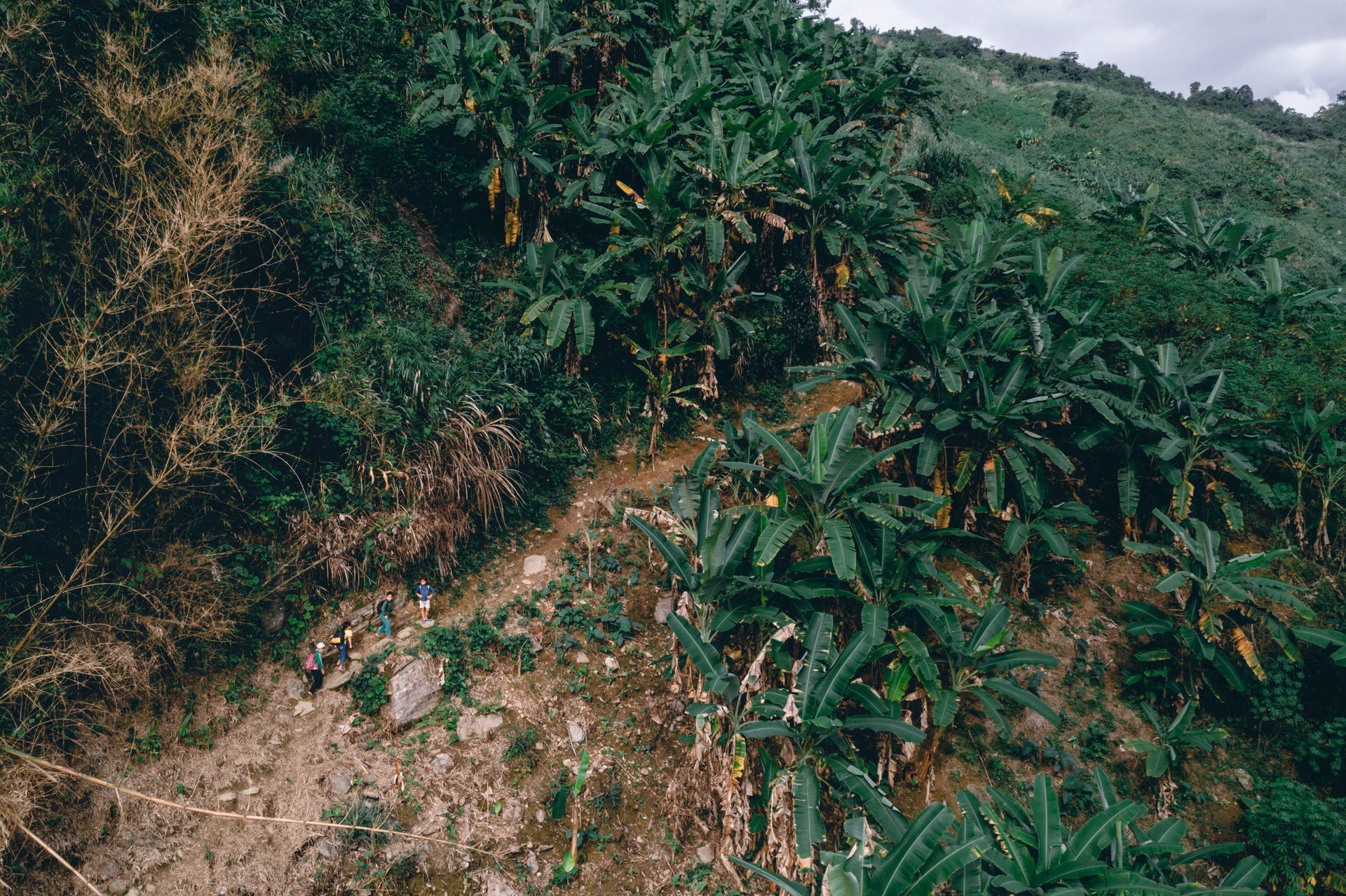 | Để đến điểm trường, hai cô giáo trẻ phải leo bộ khoảng 2 giờ cùng đồ dùng cho nhiều tuần. Đây cũng là con đường tới trường của học sinh lớp lớn ở Tắk Pổ. |
