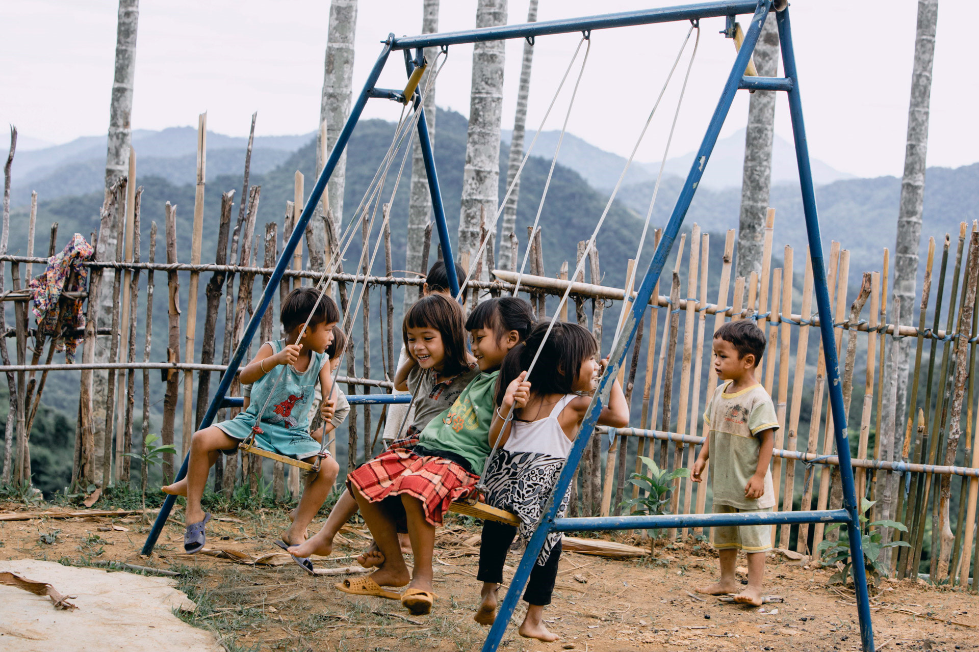 | Cả ngôi trường chỉ có một chiếc xích đu cho trẻ vui chơi. Các em tự tổ chức chơi đùa với nhau, nắm tay ca hát hay vật lộn trên nền đất. |