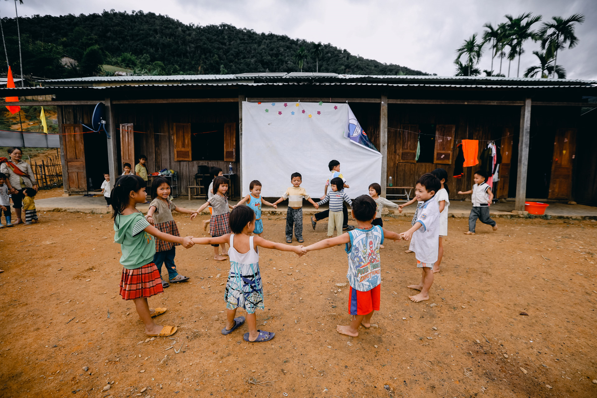 | Những đứa trẻ quanh năm sống với núi rừng, không có sự xuất hiện của đồ dùng công nghệ. Ngoài giờ học, chúng phụ giúp ba mẹ trông em và cùng chơi đùa với nhau. |