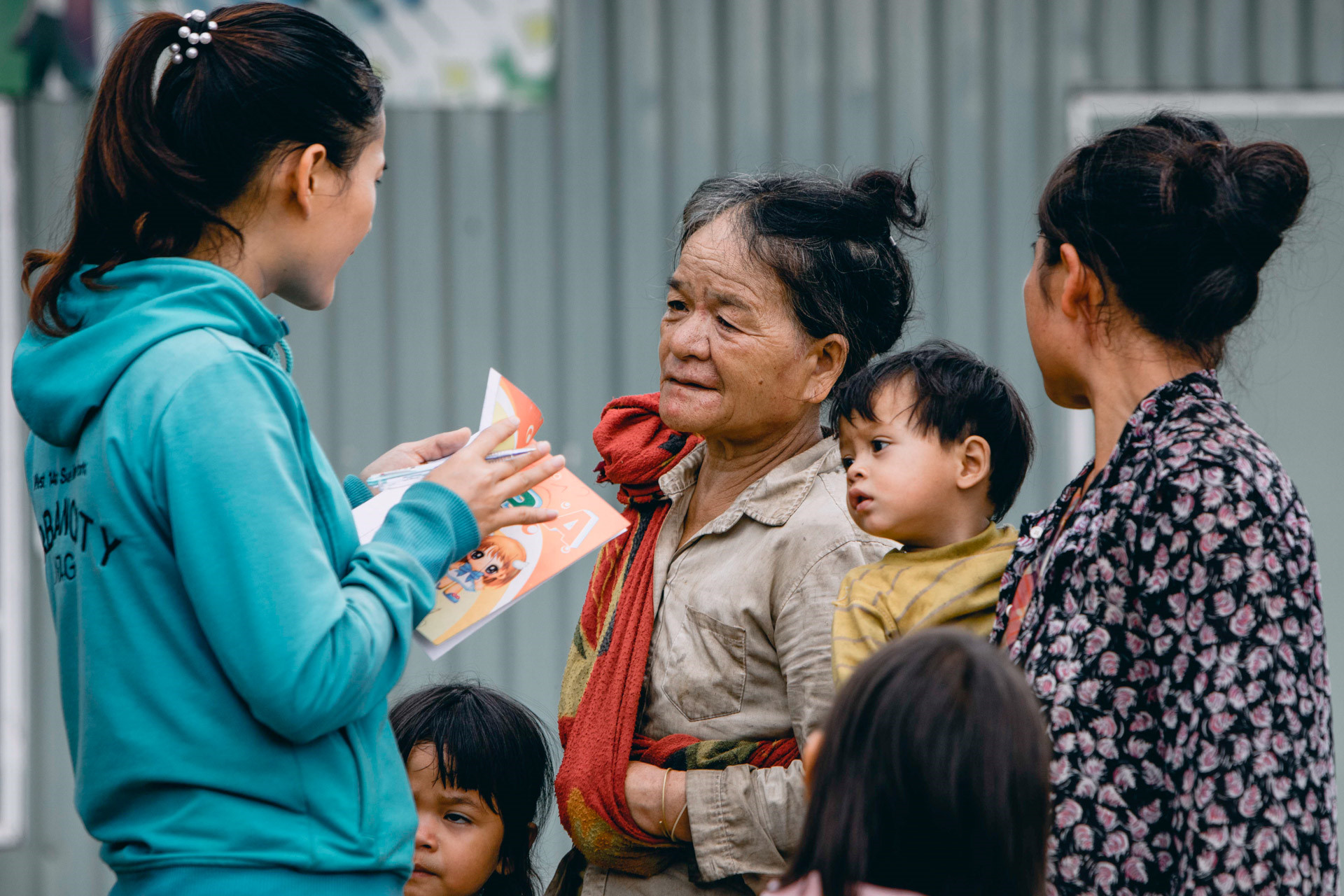 "Kêu gọi bà con ủng hộ cho trường, ai cùng vui vẻ cả, còn nhiệt tình dựng giúp các cô giáo nữa", cô Thu vừa ghi danh sách những gia đình đóng góp vừa chia sẻ.