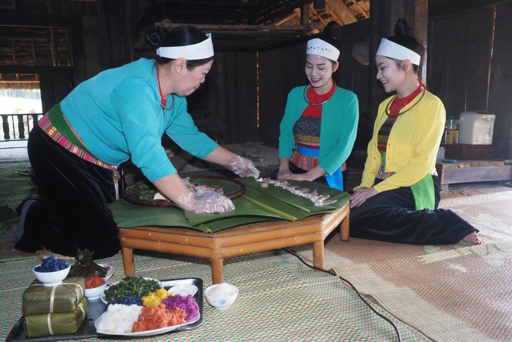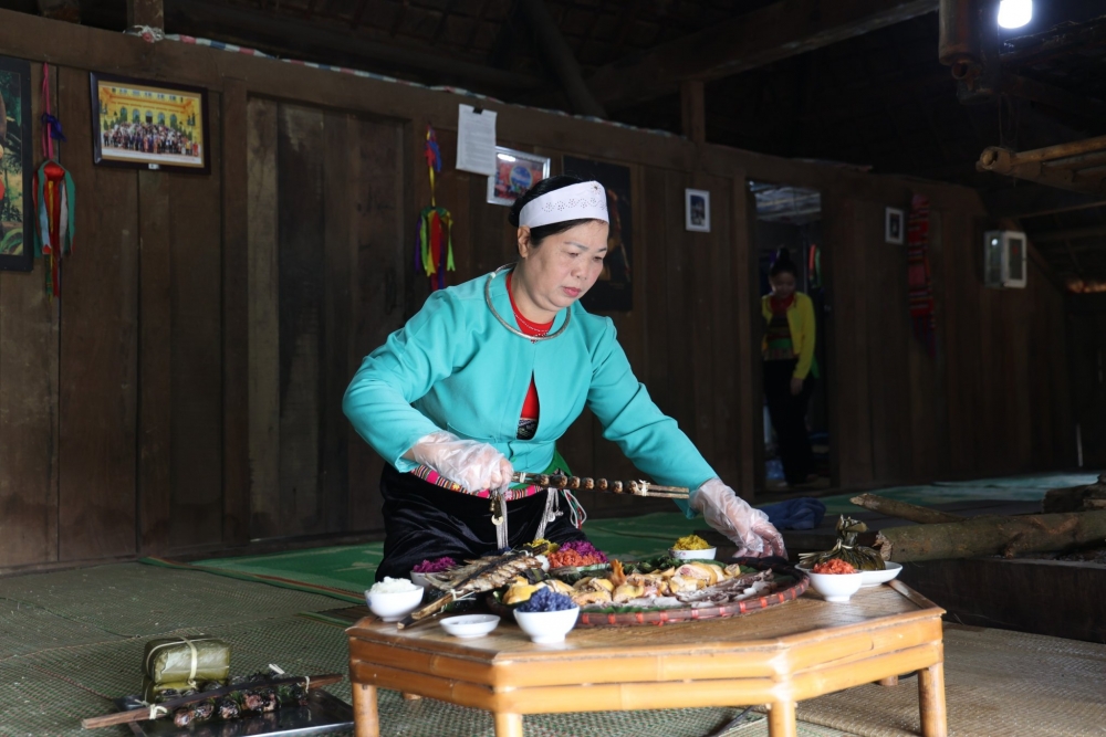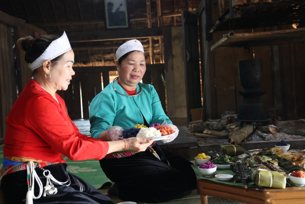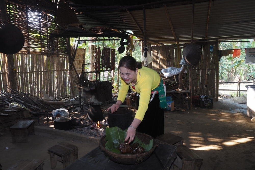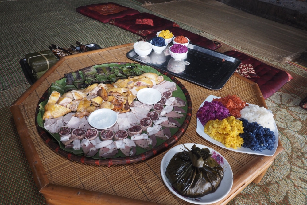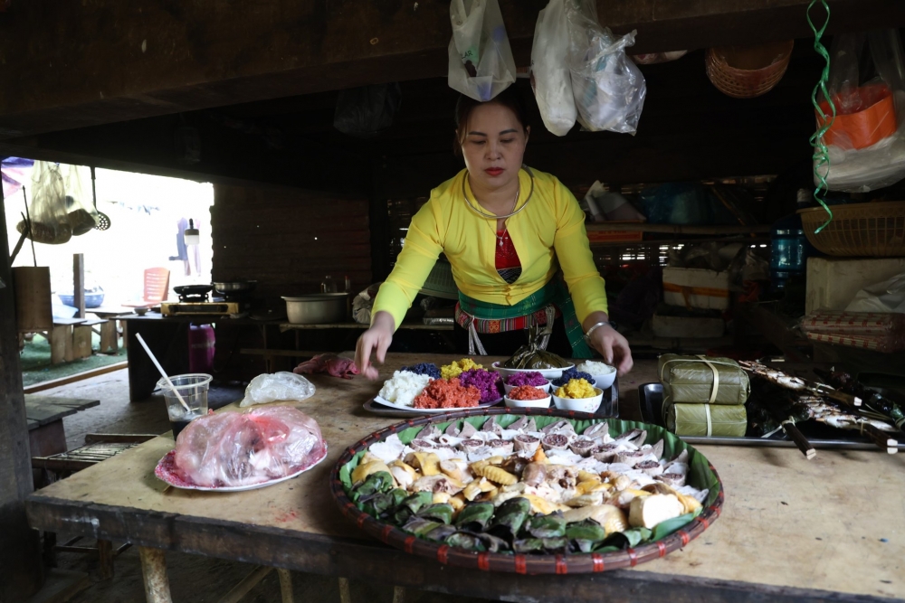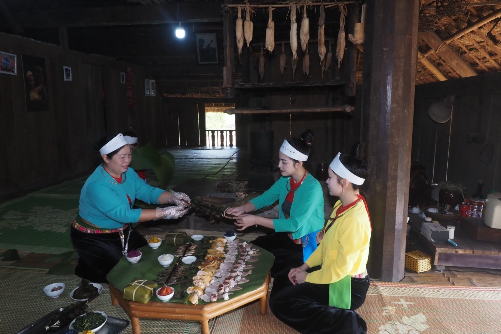 | Cỗ lá ngày Tết được xem là một trong những nét văn hóa đặc trưng, độc đáo, lạ mắt không thể thiếu trong ngày Tết của người Mường ở Hòa Bình. |