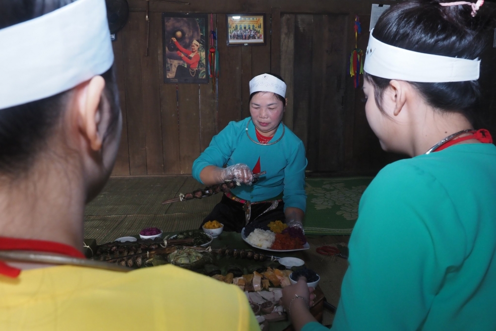 | Qua mâm cỗ lá, người Mường thể hiện cách linh hoạt tính cộng đồng, tình cảm tương thân tương ái, nền nếp gia đình cũng như văn hóa của mình. |