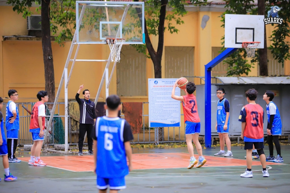 | Các bạn trẻ tham gia lớp học bóng rổ vào kì nghỉ hè |