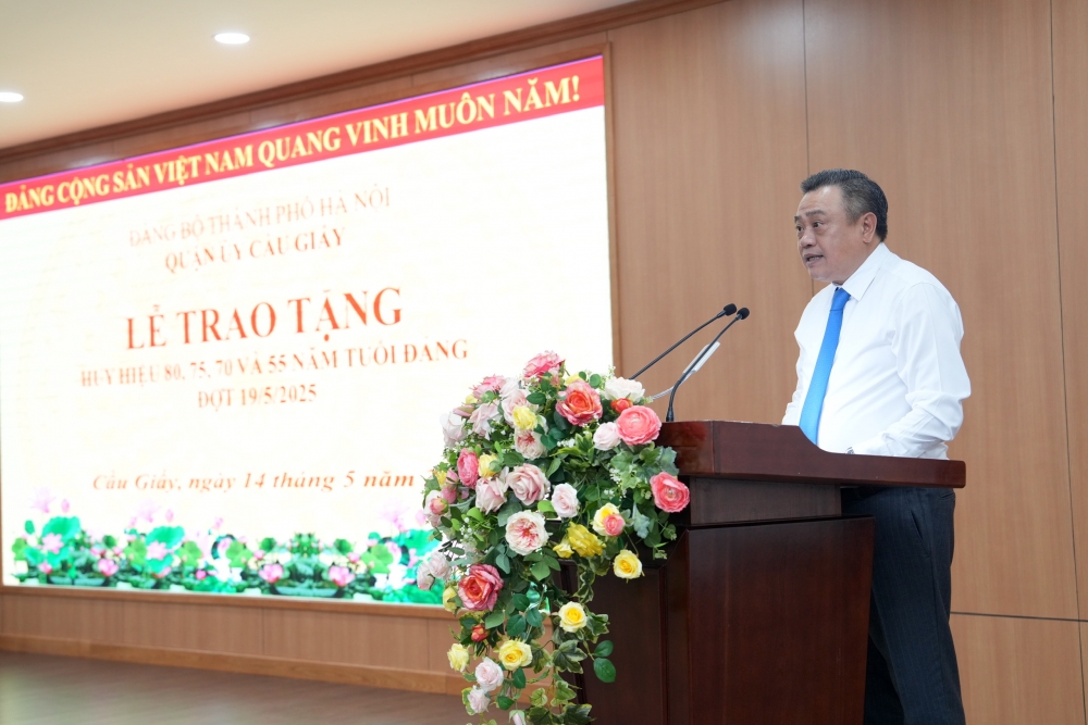 Phát biểu tại buổi lễ, thay mặt Thường trực Thành ủy, Chủ tịch UBND TP Hà Nội Trần Sỹ Thanh trân trọng bày tỏ lòng biết ơn sâu sắc đối với những đóng góp to lớn của các đồng chí đảng viên lão thành quận Cầu Giấy. Đồng thời, Chủ tịch UBND TP Hà Nội mong các đồng chí tiếp tục phát huy phẩm chất đạo đức cách mạng, tinh thần tiền phong, gương mẫu, tích cực động viên con, cháu chấp hành tốt chủ trương, chính sách của Đảng, pháp luật của Nhà nước; tiếp tục tham gia công tác xây dựng Đảng, xây dựng chính quyền địa phương và bồi dưỡng, giáo dục truyền thống cách mạng cho thế hệ trẻ, góp phần xây dựng Thủ đô Hà Nội ngày càng giàu đẹp, văn minh, hiện đại.