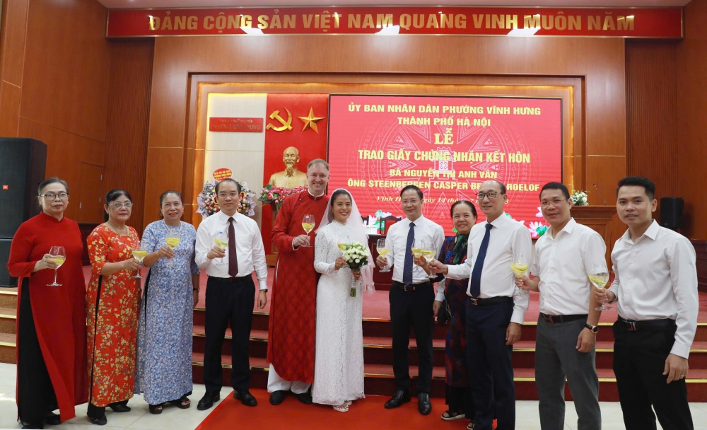 Người có yếu tố nước ngoài đầu tiên đến làm thủ tục kết hôn tại phường Vĩnh Hưng