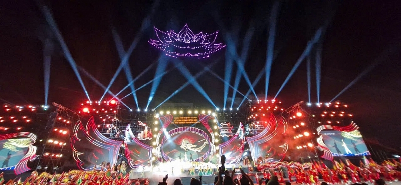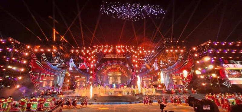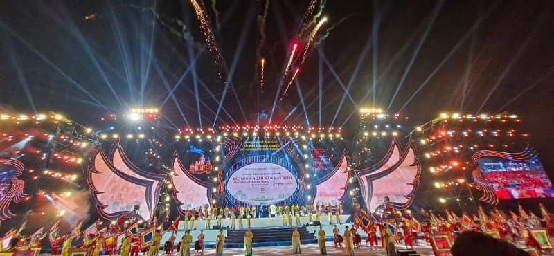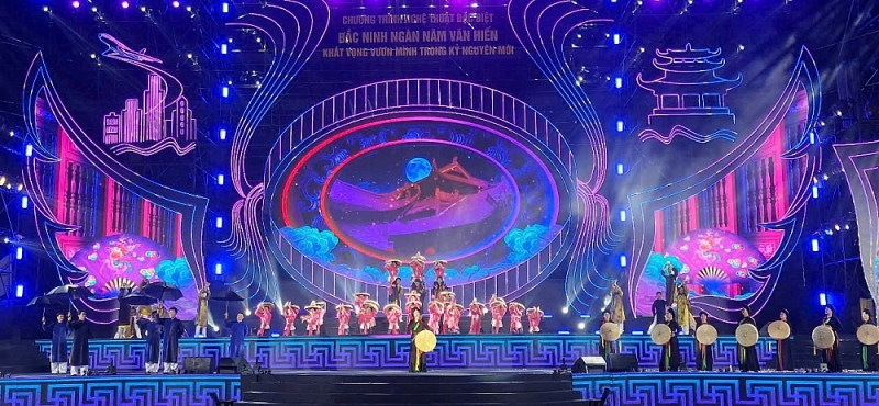 | Chương trình nghệ thuật đặc biệt chào mừng tỉnh Bắc Ninh mới với nhiều tiết mục văn nghệ đặc sắc, thu hút hàng trăm nghìn người dân tham dự. |