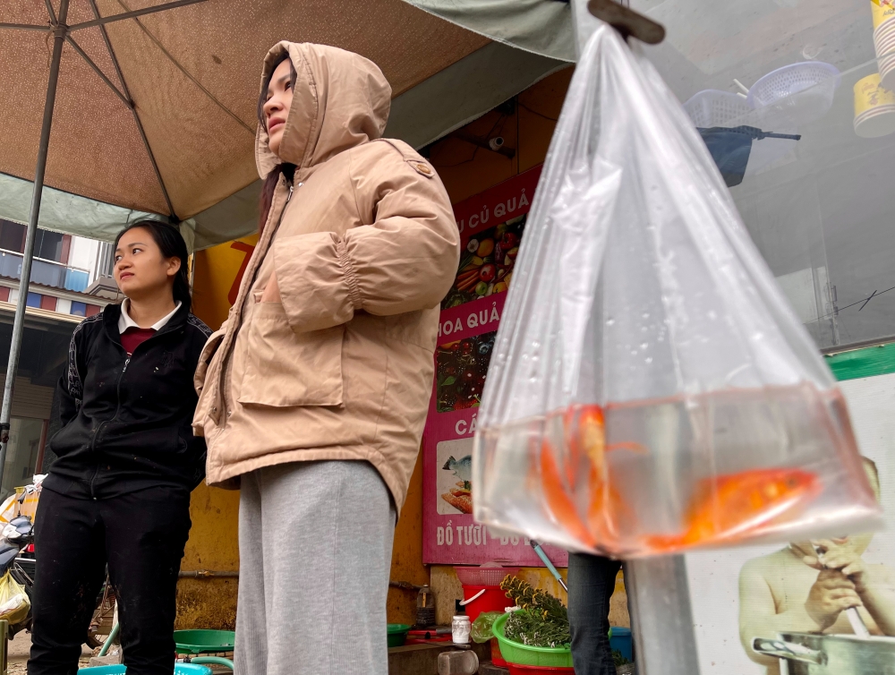 | Đi chợ từ sáng sớm để tìm những con cá đẹp mắt, chị Nguyễn Minh Thư (27 tuổi, Thạch Thành, Thanh Hoá) cho biết, để chọn được con cá chép đẹp, chị thường chọn cá chép vàng, vừa có màu sắc đẹp mang ý nghĩa hoàng kim, vừa có kích thước nhỏ, thuận tiện để thực hiện nghi lễ. |