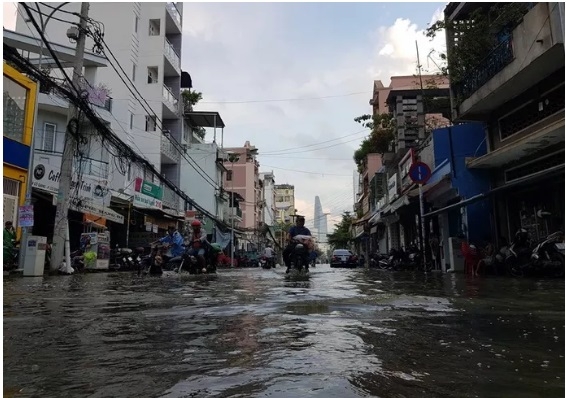 | Triều cường gây ngập lụt ở thành phố Hồ Chí Minh tháng 9 vừa qua, nơi sẽ bị ảnh hưởng "đúp" cả nước biển dâng vào năm 2050. |