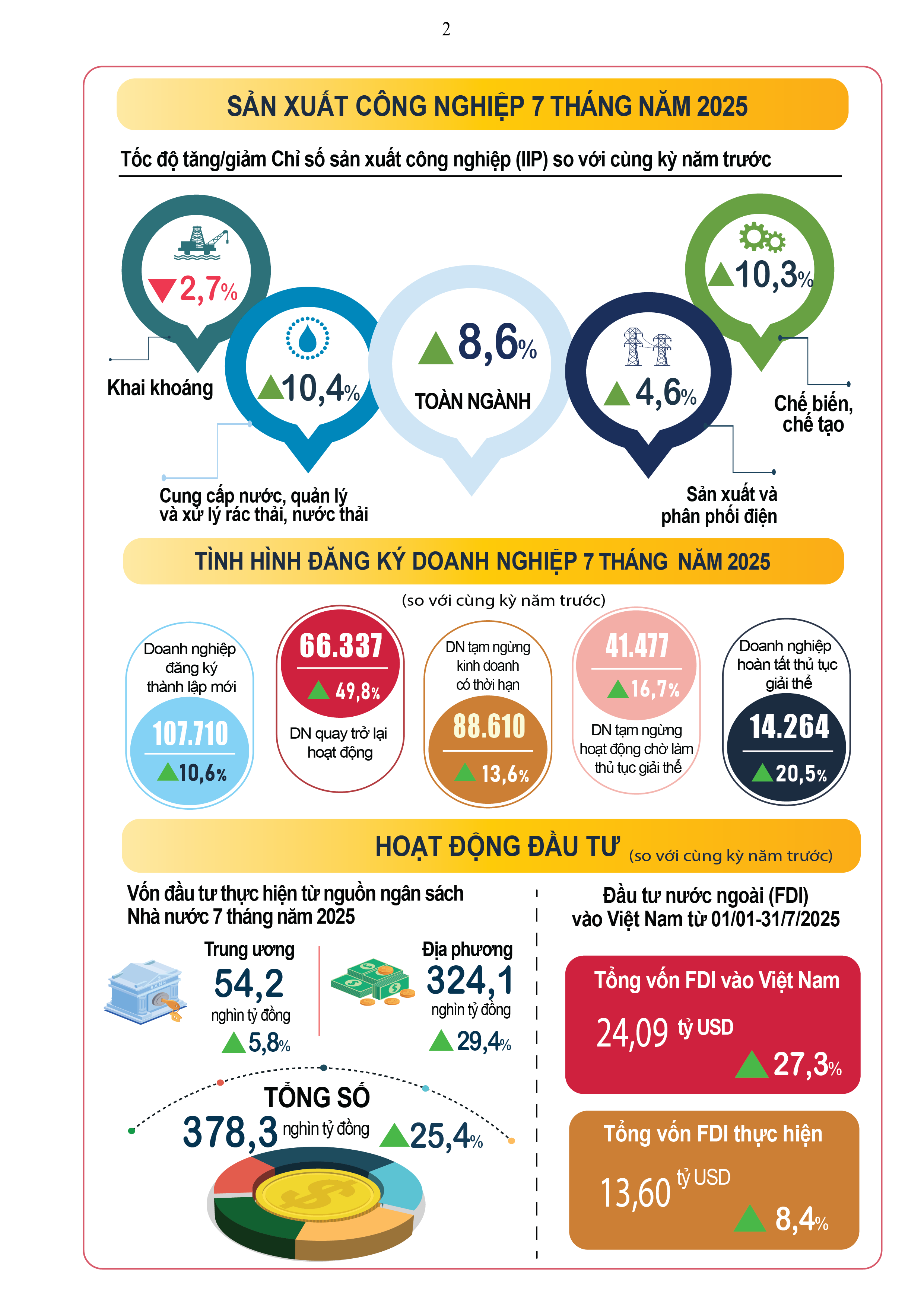 Tháng 7 và 7 tháng năm 2025, tình hình kinh tế - xã hội tiếp tục xu hướng tích cực, cơ bản đạt các mục tiêu đề ra.