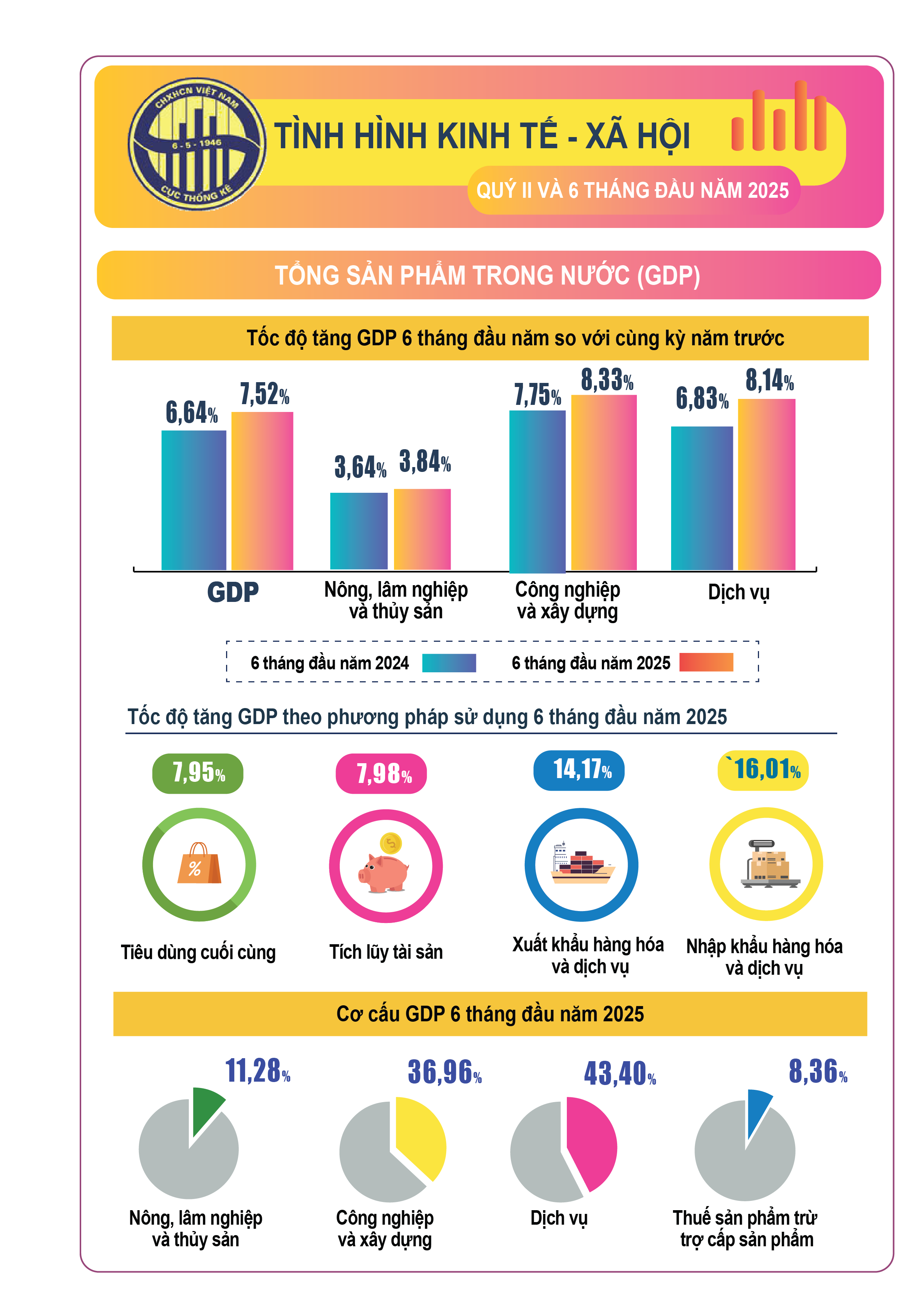 Bức tranh kinh tế - xã hội quý II và 6 tháng đầu năm 2025 của nước ta đạt được kết quả rất tích cực, tiệm cận mục tiêu đề ra trong bối cảnh kinh tế thế giới và khu vực còn nhiều bất ổn.