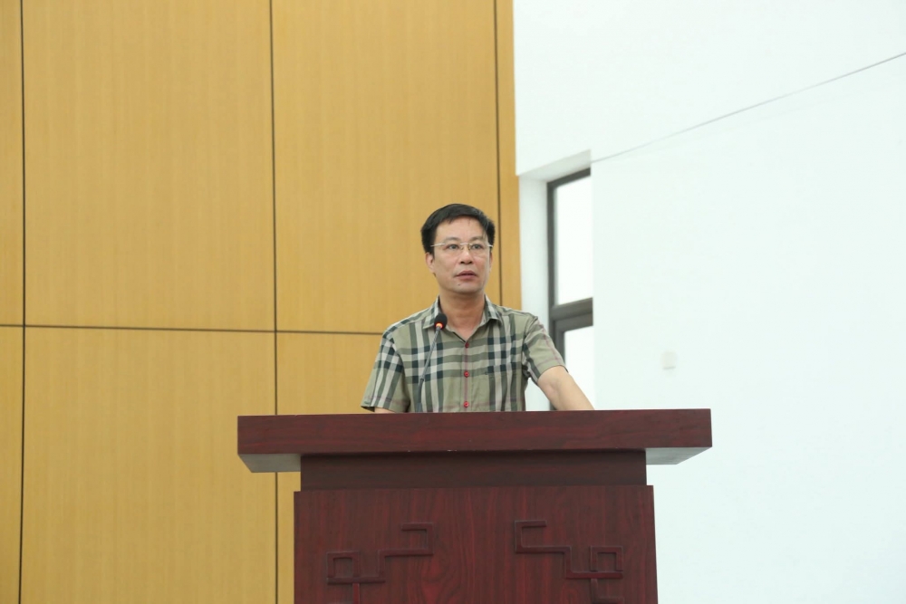 | Đồng chí Đào Thắng, Phó Bí thư Đảng ủy, Chủ tịch UBND xã, Trưởng Ban chỉ đạo phòng chống dịch phát biểu tại hội nghị |