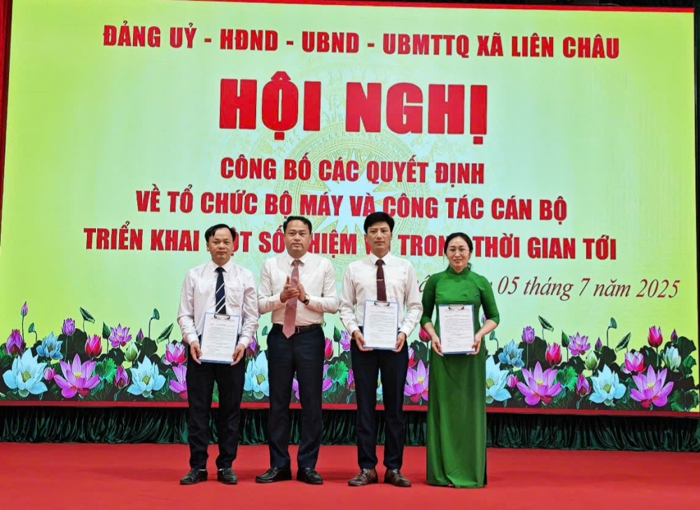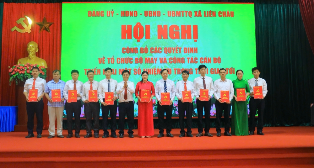 Tại hội nghị, đại diện Đảng ủy và UBND xã Liên Châu đã công bố các quyết định về tổ chức bộ máy và công tác cán bộ của Đảng ủy, chính quyền xã; triển khai công tác chuẩn bị Đại hội đại biểu Đảng bộ xã Liên Châu nhiệm kỳ 2025-2027 và một số nhiệm vụ trọng tâm trong thời gian tới.